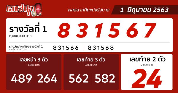 63 ตรวจหวย 1 มิถุนายน ตรวจหวย 1 มิถุนายน 2563 ตรวจหวย 1/6/63 ตรวจหวยงวดนี้ ตรวจหวยล่าสุด ตรวจหวยออก. ตรวจสลากกินแบ่งรัฐบาลงวด 1 มิถุนายน 2563 ตรวจหวยงวด 1 มิถุนายน. ตรวจหวย ตรวจสลากกินแบ่งรัฐบาล งวด 1 มิถุนายน 2563 รางวัลที่ 1 (831567. ตรวจหวย งวดวันที่ 16 พฤษภาคม 2564 ตรวจหวย งวดวันที่ 2 พฤษภาคม 2564 ตรวจหวย งวดวันที่ 16. รวมเลขเด็ด ข่าวหวยงวด 1 มิถุนายน 2563 จากข่าวยอดนิยม 01 มิ.ย.